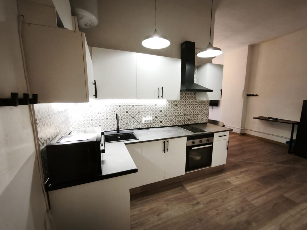 El corazón del loft es su amplio salón-comedor, un espacio luminoso y versátil que se integra armoniosamente con la cocina abierta, ideal para disfrutar del día a día o para reuniones sociales en un ambiente moderno y acogedor.