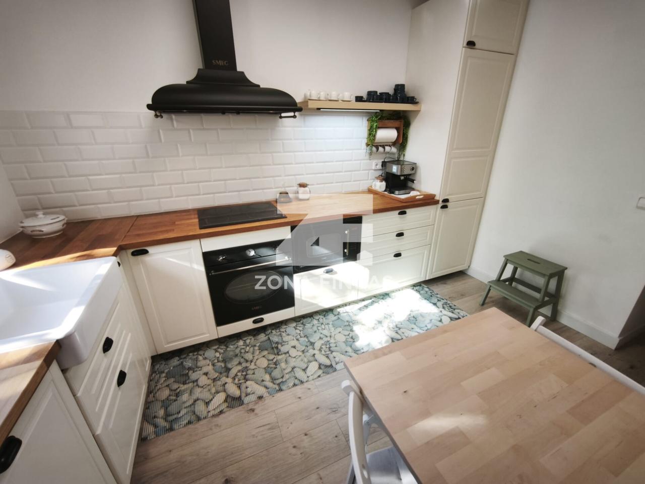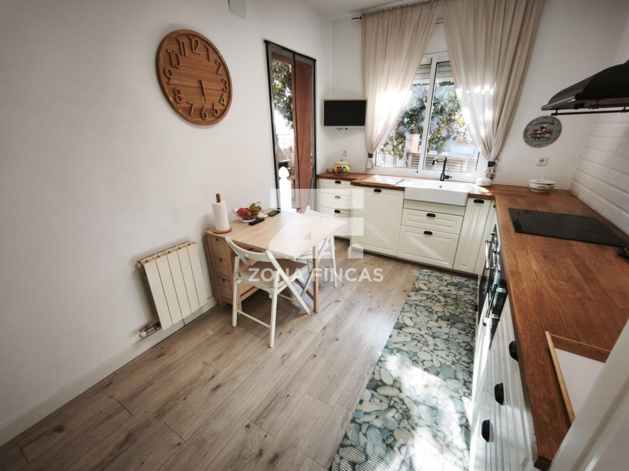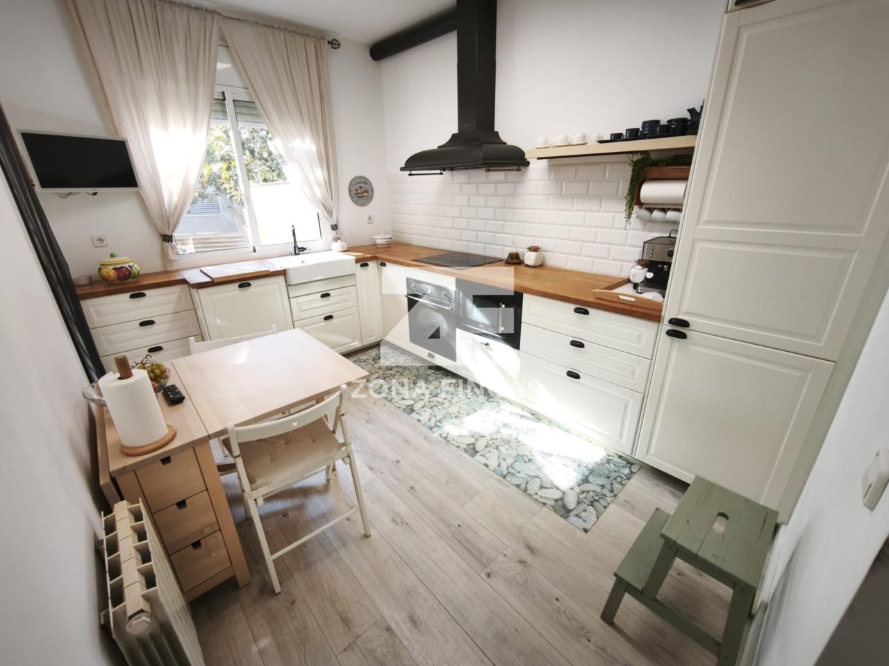 Desde la cocina se accede a un encantador porche que nos conduce a un jardín privado con barbacoa y zona de aparcamiento, un rincón perfecto para celebraciones, tardes de verano o simplemente para desconectar del día a día.